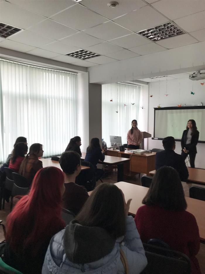 As part of career guidance, teachers of the Far East Department held an event for schoolchildren "Mysterious Japan." The event was attended by high school students of Almaty and students of the Japanese studies department. At the beginning of the event, first-year students introduced the Far East department, the Japanese studies department. Then the freshmen held a quiz about Japan for high school students. Schoolchildren actively answered questions, showed great interest in the land of the rising sun. Pupils who answered correctly to more questions were presented with Japanese souvenirs. In the continuation of the event, first-year student Rakhmankulov Arthur sang a song in Japanese. After his speech, high school students shared their impressions, they really liked the sound of the Japanese language. At the end of the event, the students watched a video about learning opportunities in Japan. After watching the video, high school students were able to get answers to their questions about Japan.