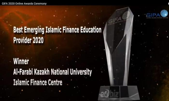 Al-Farabi KazNU Islamic Finance Scientific and Educational Centre at the HSEB of al-Farabi Kazakh National University was awarded as the winner of the Best Emerging Islamic Finance Education Provider 2020 award, in recognition of the contribution of al-Farabi Kazakh National University to the development of best practices in the field of Islamic Finance. |