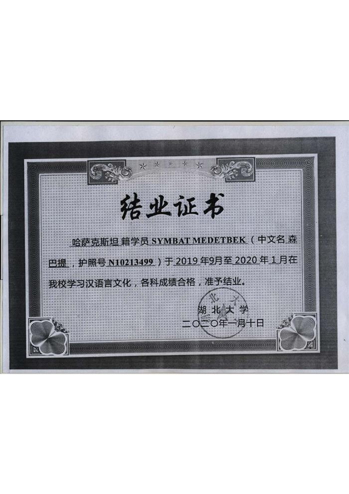 Диплом об окончании курса выдан Медетбек Сымбат. |